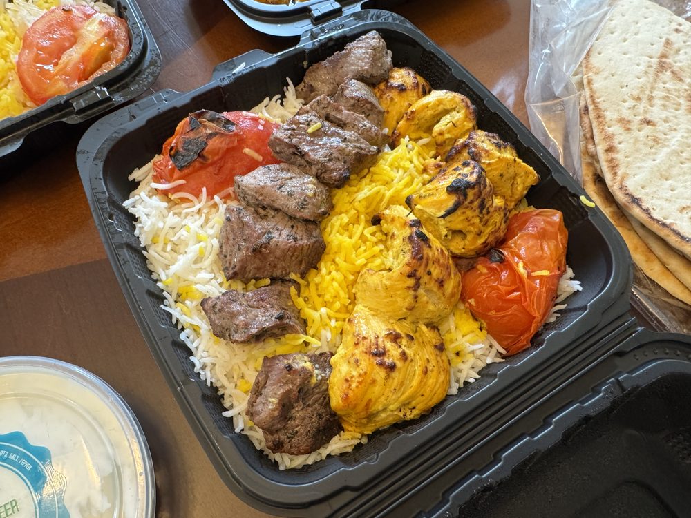 Start your meal with an array of appetizers such as the creamy Kashko Bademjan or crispy Falafel, each priced at just $5.99. You can also indulge in their generous family platters, perfect for sharing, with options starting at $53.99.